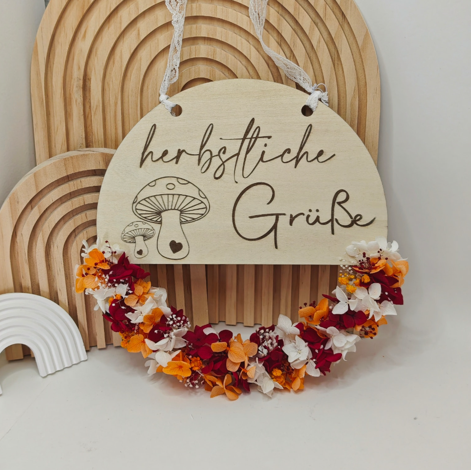 Perfekt fürs herbstliche Dekorieren. Dieser Krank erweckt ein zauberhaftes wohliges Ambiente